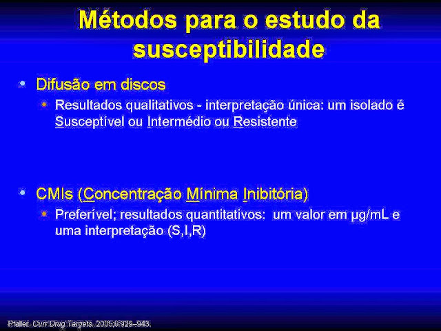 Todos os créditos do documento exposto nesta página devem ser atribuidos à Drª Dinah Carvalho, Técnica Superior de Saúde do Serviço de Patologia Clínica do Centro Hospitalar Lisboa Norte (o documento foi elaborado e apresentado inserido no contexto da sua actividade diária como microbiologista do seu Serviço) e à Prof Drª Maria Manuel Lopes da Faculdade de Farmácia de Lisboa.