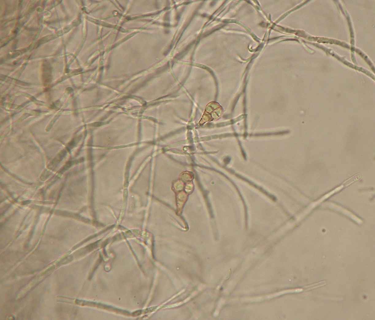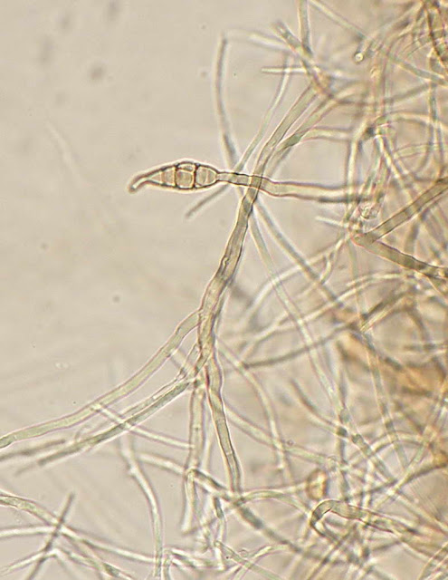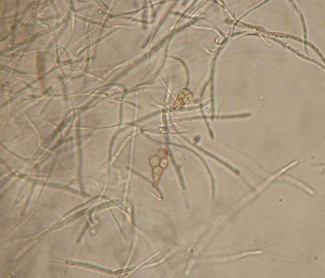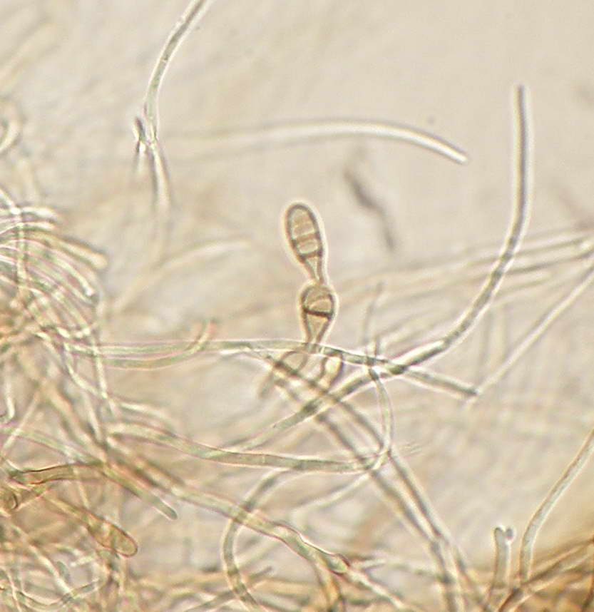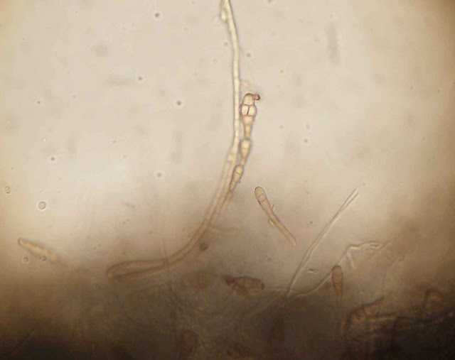 | Hifas com pigmento castanho. |
