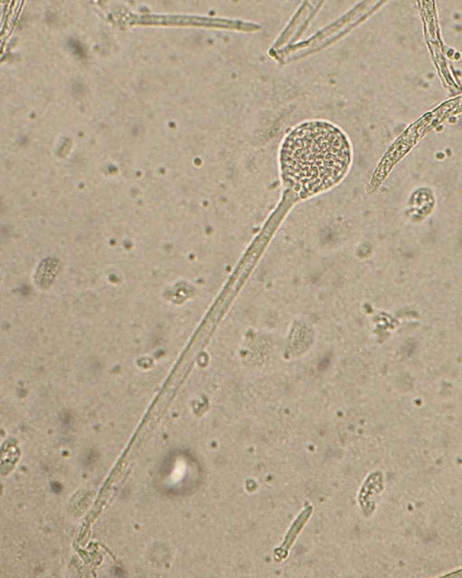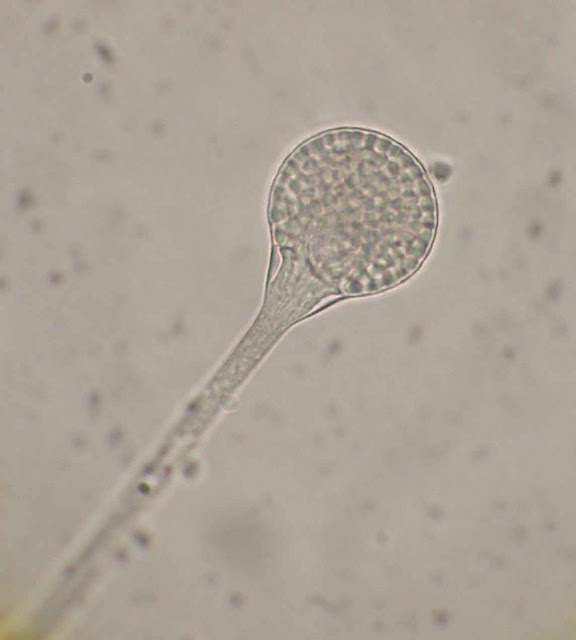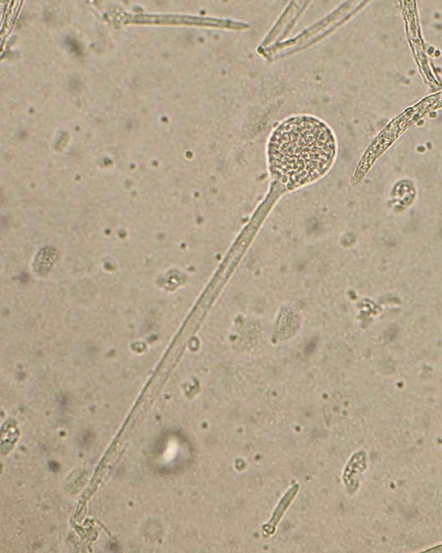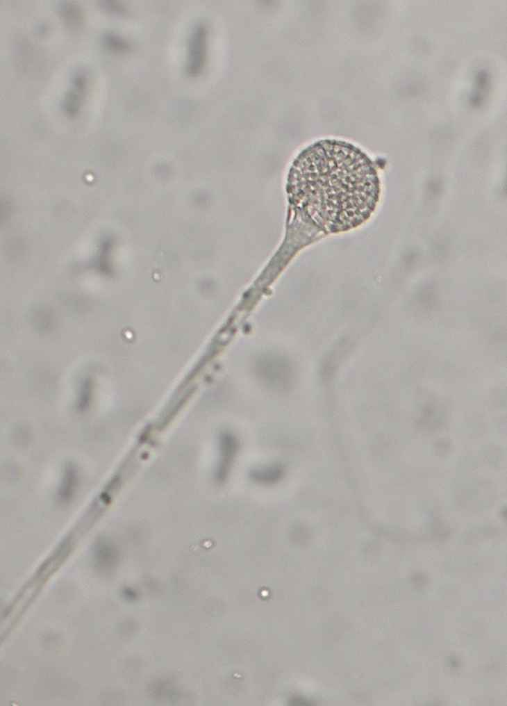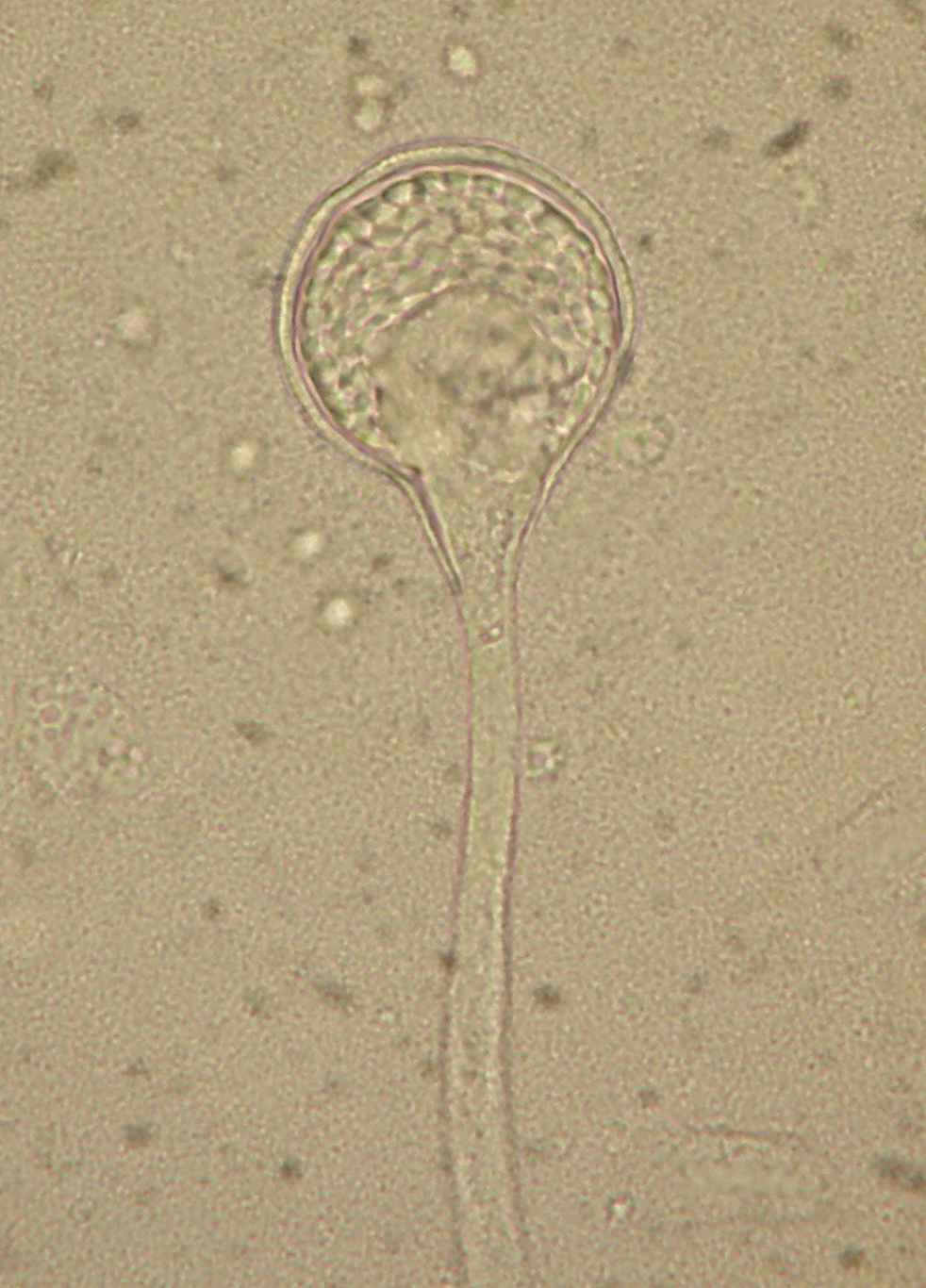 O sporangióforo é hialino, pode ser ramificado e termina numa forma afunilada (apófise) imediatamente antes do esporangios que ajuda a diferenciá-lo do Mucor, do Rhizomucor e do Rhizopus.