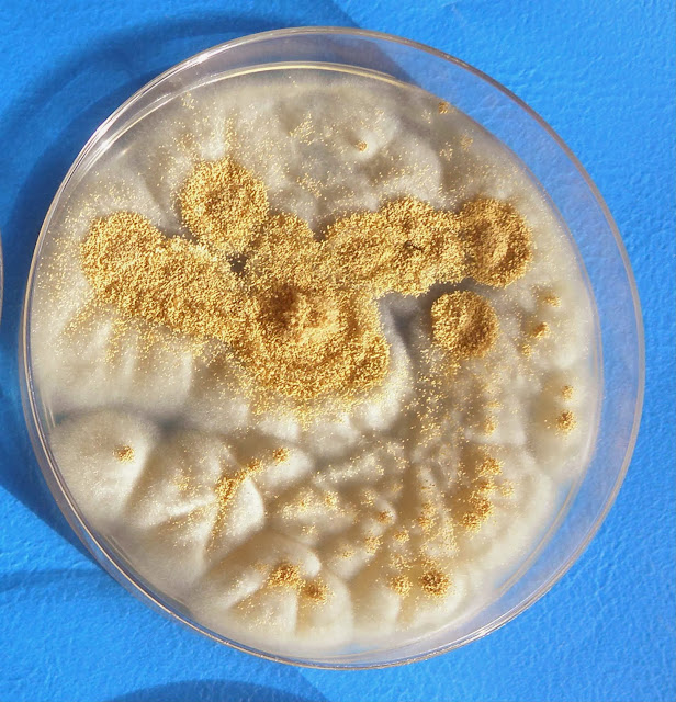 As colónias são de crescimento lento, a cor é amarelo-ocre.