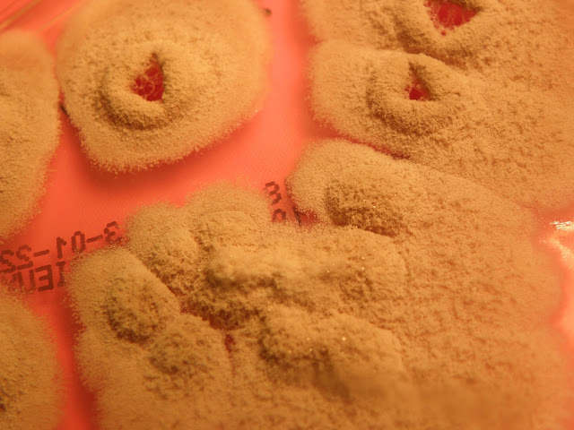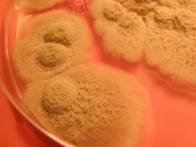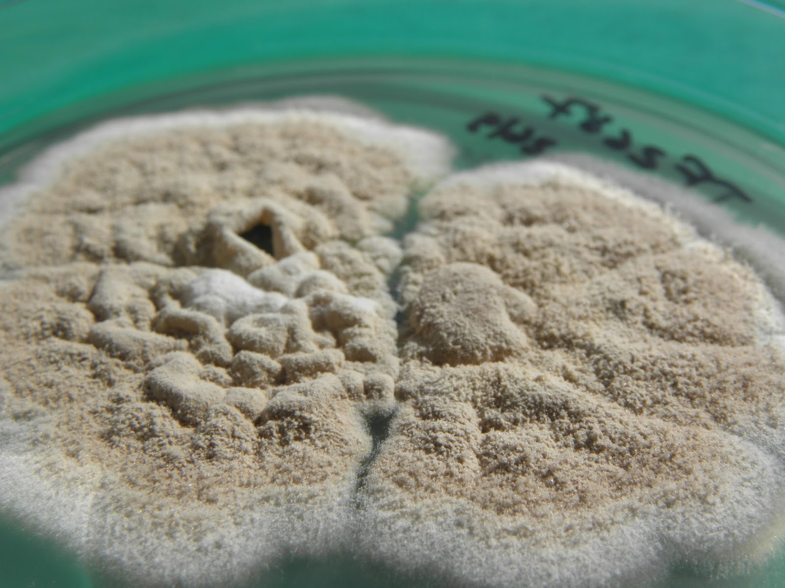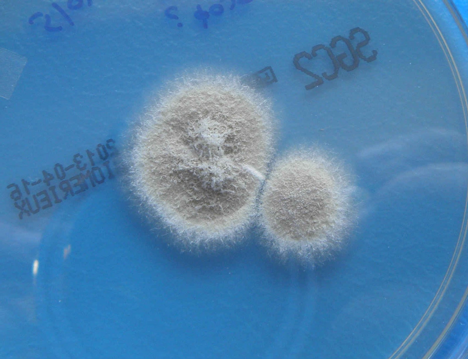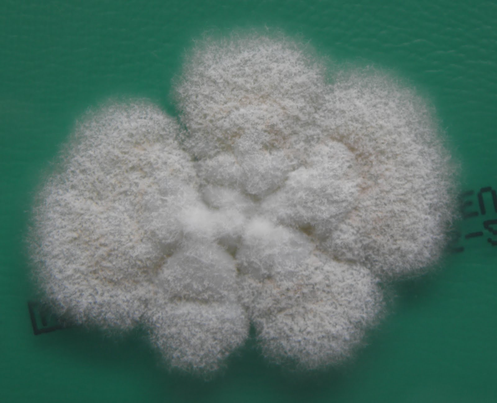 | Colónia com 40 mm em 7 dias. Inicialmente branca vai mudando até cor de avelã. Textura inicialmente granular acaba por ficar como algodão solto. |