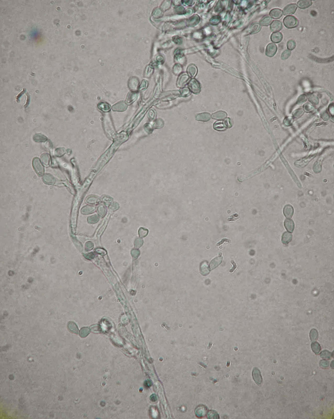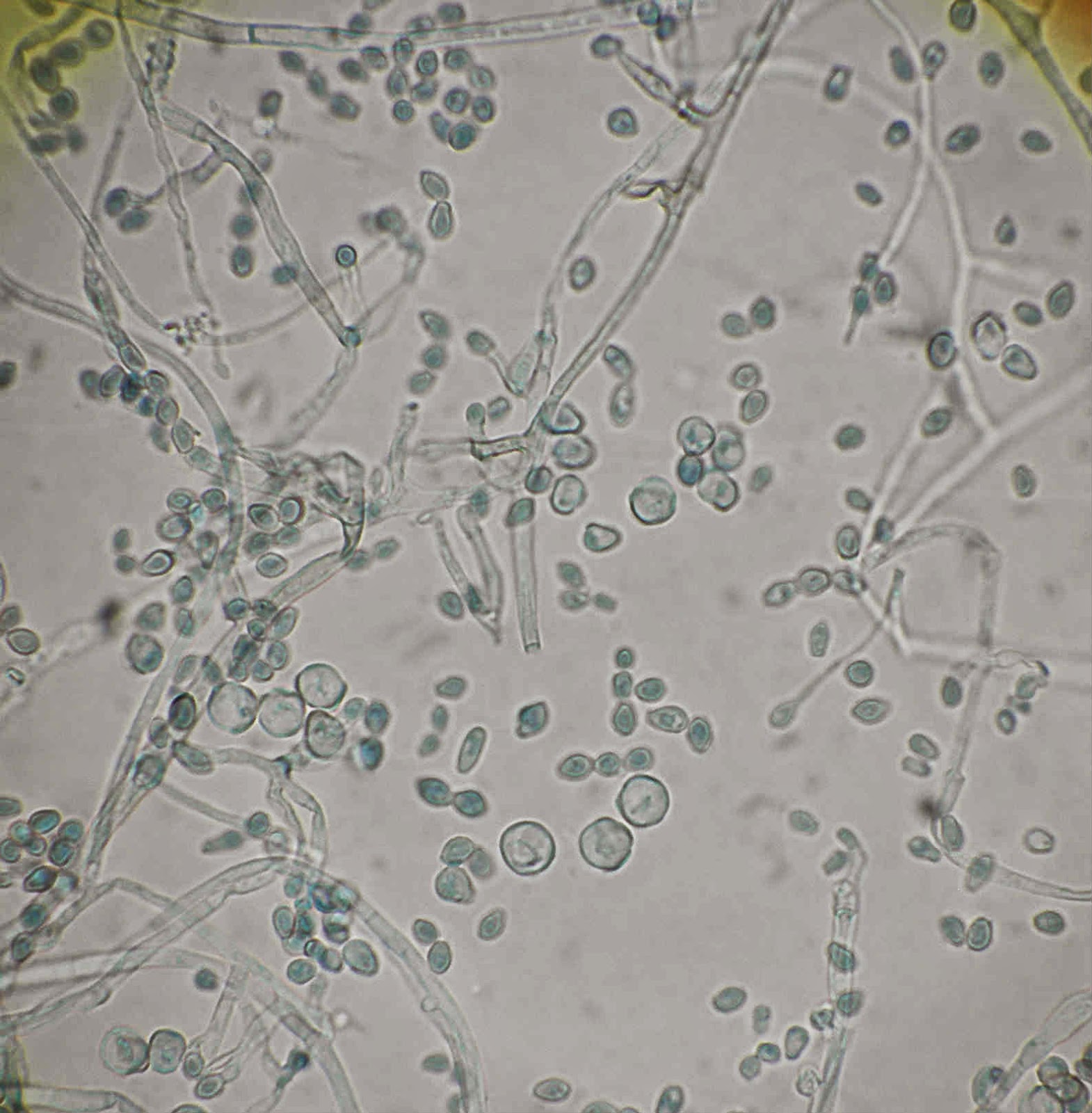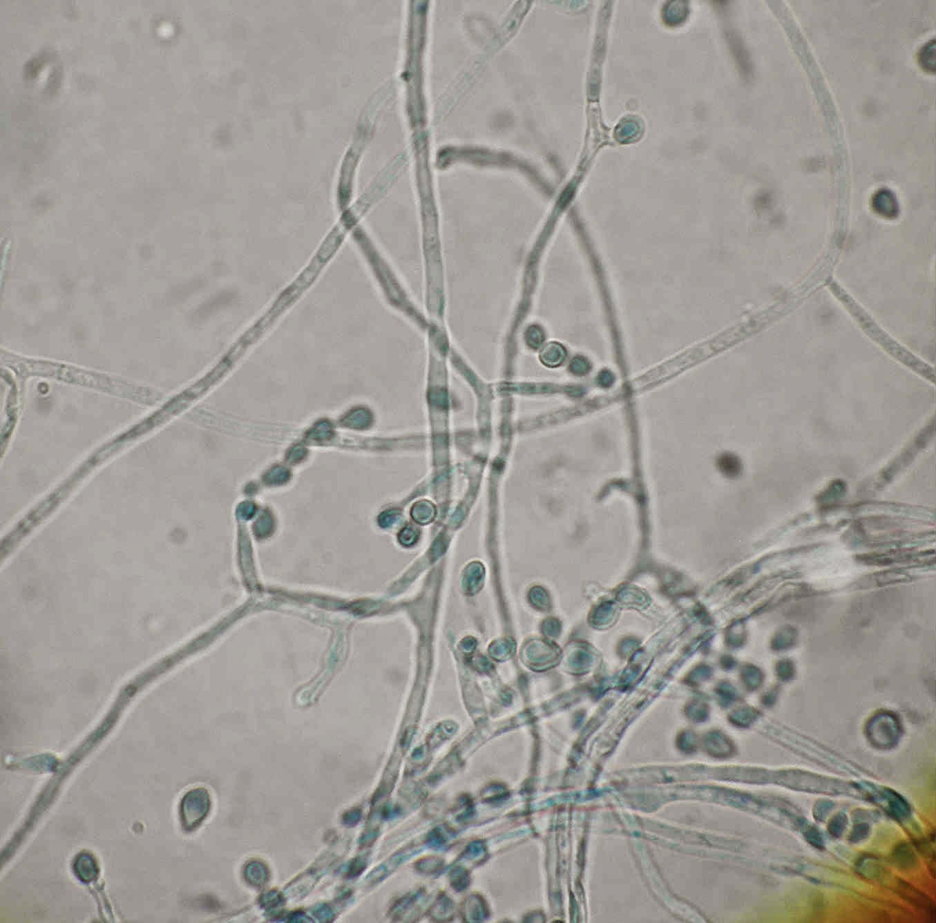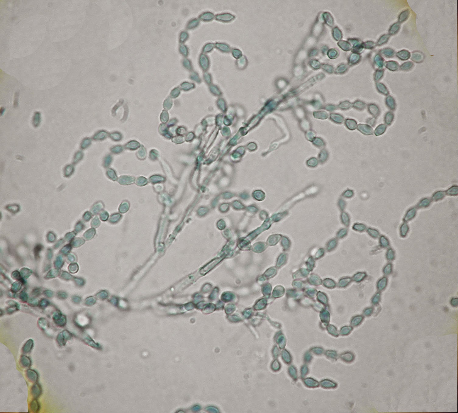 Ao exame microscópico os conidióforos nascem, de modo isolado, directamente da hifa quer lateralmente quer na sua porção terminal. Os conidióforos são erectos ou um pouco curvos afunilando em direcção ao apex. No topo dos conidióforos originam-se espirais de fiálides, cada fiálide termina num longo e estreito pescoço dando origem a longas cadeias de conideos castanhos com a forma de limão.
