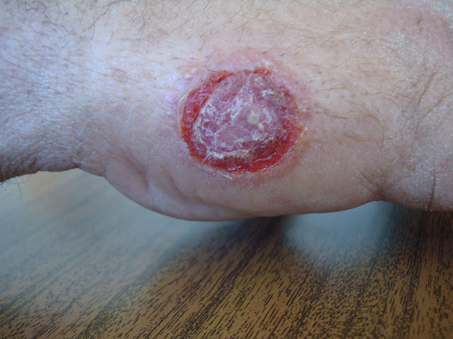 | Lesão no antebraço. Últimas três fotografias : cedidas gentilmente pela Drª Neide Pereira. |